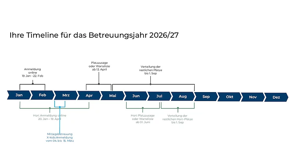 Die Zuteilung der Hortplätze erfolgt ab dem 20. April. Die Benachrichtigungen werden ab dem 1. Juni 2026 über das Anmeldeportal versendet.